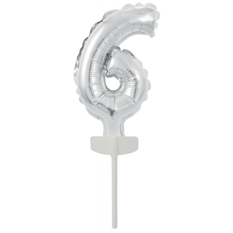 Silver, Ezüst 6-os szám fólia lufi tortára 13 cm