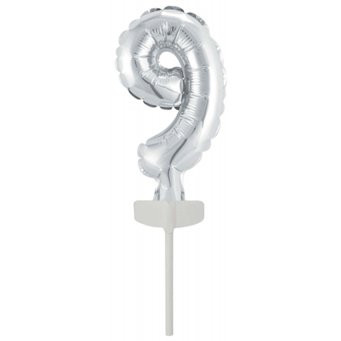 Silver, Ezüst 9-es szám fólia lufi tortára 13 cm party kellék 1 kép