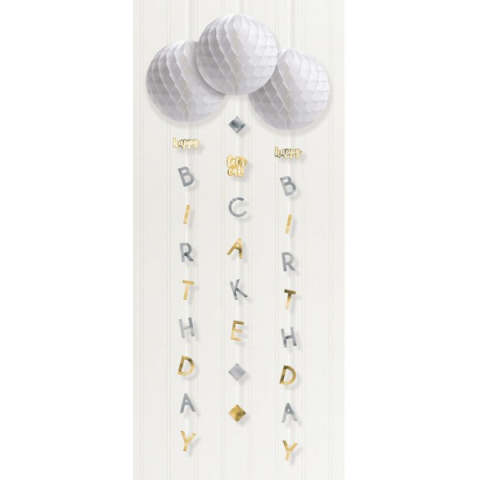 Silver, Gold Happy Birthday függő dekoráció 3 db-os szett