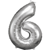 Silver óriás szám fólia lufi 6-os, 86*58 cm