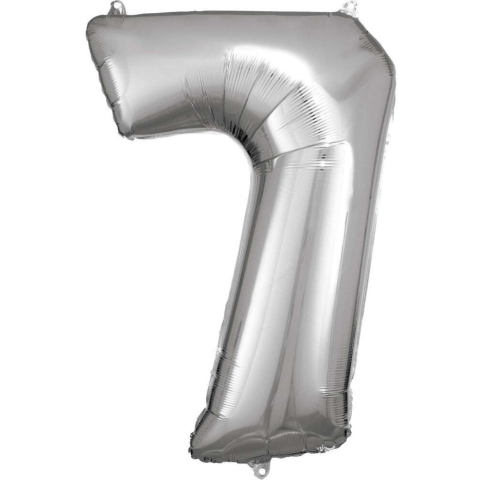 Óriás 7-es szám Fólia lufi, Silver 83*55 cmFólia léggömb, mely héliummal vagy levegővel tölthető. A lufi önzárószeleppel van ellátva, amely megakadályozza a gáz elszökését.Mérete 83*55 cm Anyaga: fólia A lufi tartó pálca + csésze külön megvásárolható áruházunkban.