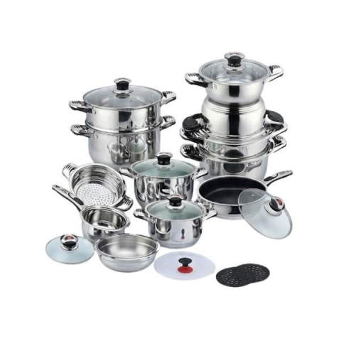 SILVER ROYAL Exclusive 16 részes Edényszett SR-1730Ez a nagy, professzionális készlet a legkülönfélébb főzési feladatokra kínál megoldást, a rozsdamentes acélból készült elemek hosszú élettartamot és hatékony főzést biztosítanak.Főbb jellemzők a csomagolás alapján:Termék neve: SILVER ROYAL Exclusive Cookware SetRészek száma: 16-PIECES (16 részes készlet)Anyag: 18/10 EDELSTAHL (18/10 rozsdamentes acél)Alj technológia: 9 LAYERS BOTTOM (9 rétegű alj), amely kiv