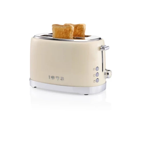 Retro stílusú elemek Elegáns fém test illesztések nélkül Optimális pirítási eredmény a 6 állítható pirítási fokozatnak és az elektronikus barnításvezérlésnek köszönhetően A kenyérszeletek változtatható központosítása az