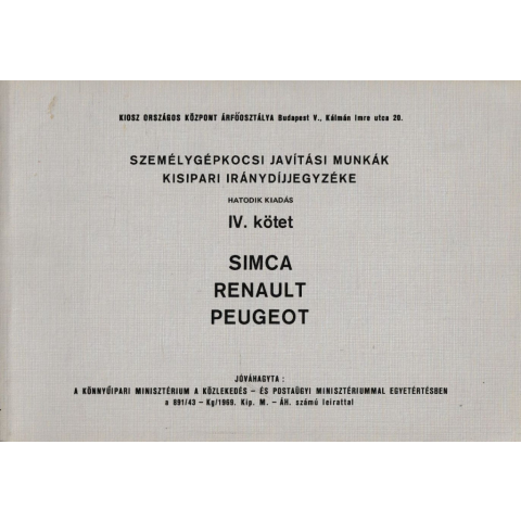 Személygépkocsi javítási munkák kisipari iránydíjjegyzéke IV.kötet