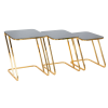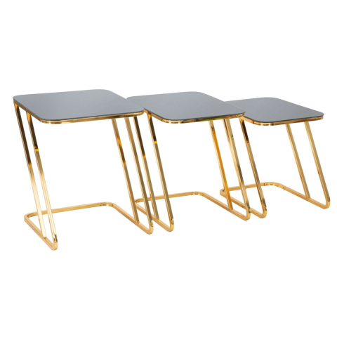 SIMPLE Fekete Üveg Lerakóasztal Szett - 3 darabos, Arany Lábakkal ✨ Dobd fel otthonod a SIMPLE háromrészes lerakóasztal szettel, mely időtálló eleganciát és modern stílust kölcsönöz nappalidnak vagy hálószobádnak! A szett jellegzetes Z-alakú, aranysz...