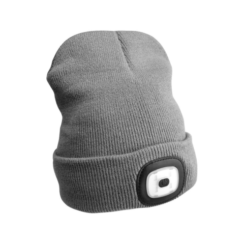 Sapka LED-es fejpánttal, beépített LED-es fény 180 lm (4x45 lm), 3 világítási mód - 50%, 75% és 100%, az akkumulátor élettartama akár 4 óra, a fejpánt levehető és a sapka mosható, hátul fényvisszaverő, egyszerű újratöltés USB-n keresztül, világosszürke.