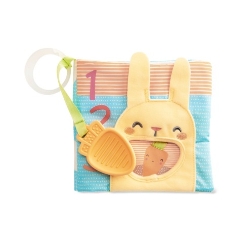 Puha textil interaktív könyv bájos képekkel éskülönböző tevékenységekkel. Különböző textúrák, zizegő hang, színes számok,állatfigurák, kerti motívumok, rágóka vagy tükör ösztönzik a gyermeket, hogyfelfedezzen, kísérletezzen és gyakorolja a finommotori