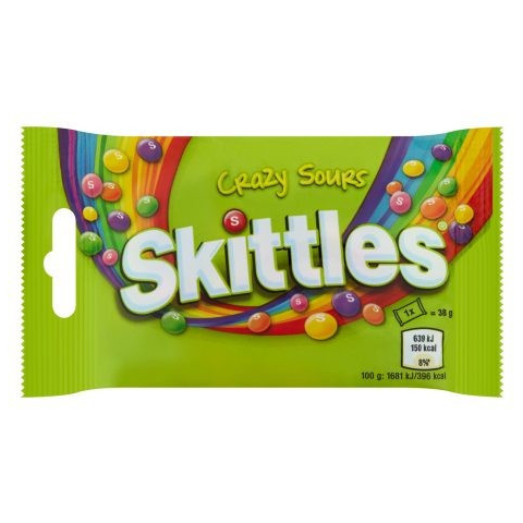Skittles Crazy Sours savanyú gyümölcsízű cukordrazsé ropogós cukormázban 38 g