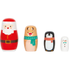 Vianočné matriošky prinášajú radosť deťom i dospelým. Láskyplne maľované drevené figúrky s motívmi Santy, soba, tučniaka a snehuliaka. Menšie figúrky sa podľa veľkosti postupne zasúvajú do väčších, čo podporuje hru, objavovanie a jemné motorické schop