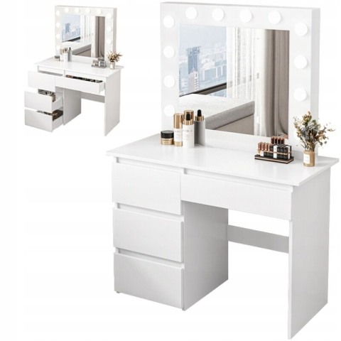 Modern LED-es Sminkasztal Tükörrel - 90 cm széles ✨ Ez a stílusos és funkcionális sminkasztal tökéletes választás minden nő számára, aki értékeli a kényelmet és az eleganciát. Ideális otthoni használatra, de professzionális szépségszalonokba is. Főbb...