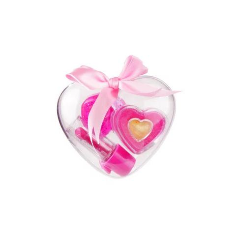 Vidd magaddal a rúzsodat, körömlakkodat és szájfényedet! A Sminkkészlet szív alakú dobozban egy átlátszó csomagban lévő rózsaszín szépség készlet, amivel bárhol ki tudod magadat sminkelni. A körömlakk és a szájfény csillámos, a készlet egy kis tubus rúzst, valamint a szükséges applikátorokat is tartalmazza, amikkel fel tudod vinni a felületre a sminkeket. A Sminkkészlet szív alakú dobozban egészségre ártalmas anyagot nem tartalmaz, bőrgyógyászatilag teszt