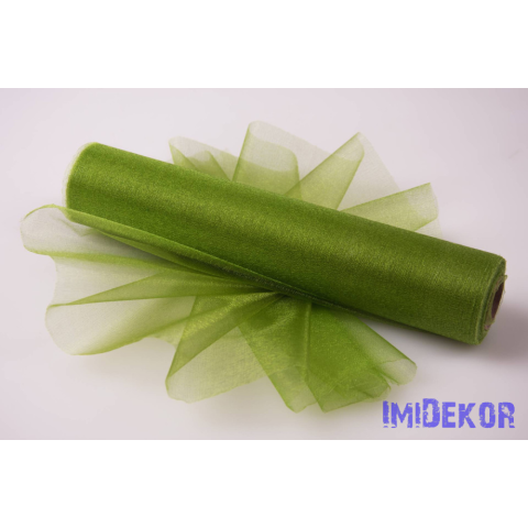 1 kép Snow Organza 23,5cm x 10m dekorációs anyag - Olivazöld