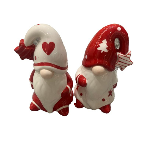 Só-Bors Szett, Karácsonyi - ManóAnyaga: Dolomiti KerámiaÉlelmiszerekkel közvetlenül érintkeztethető anyag: IgenMosogatógépben mosható: NemMikrohullámú sütőben való használatra alkalmas: NemA Szett tartalm: 1 Sószóró és 1 BorsszóróTöltés: Mindenkét szó