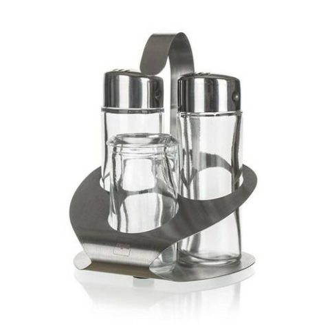 Só/Borsszóró szett CULNARIA 35ml,4db CULINARIA só- és borsszóró 35 ml, 4 db. Tető: rozsdamentes acél 18/8, PP műanyag és szilikontömítés, acél vastagsága 0,40 mm, tároló: üveg, állvány: rozsdamentes acél 18/0, alap:0,60 mm, fogantyú 0,80 mm.    Szett tartalma: 2 tároló tetővel, 1 tároló tető nélkül, 1 állvány Súlya:310 g Tisztítása: Semleges folyékony mosogatószerrel mossa el. / vagy/ meleg mosószeres vízzel mossa el, majd törölje szárazra! -