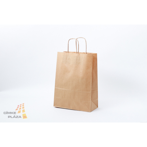 2 kép Sodrott füles papírtáska 26x35+12 cm natúr barna
