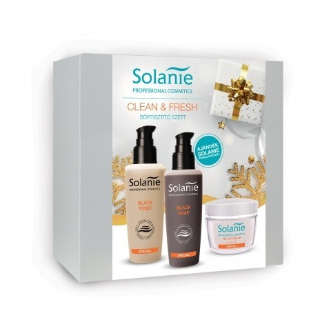 Solanie bőrtisztító szett + AJÁNDÉK törölköző - A szettben megtalálható fekete szappannal a bőr kiszárítása nélkül távolíthatod el a bőr felszínén az elhalt szarusejtekkel keveredő faggyút, mely a pórusok eltömődését és gyulladások kialakulását okozhatj
