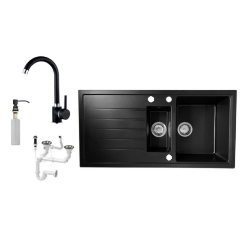 1 kép Solarys J995-50C Gránit Mosogató + Csap + Adagoló + Dugóemelő (fekete)