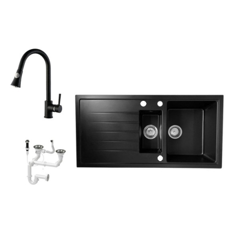 1 kép Solarys J995-50C Gránit Mosogató + Zuhanyfejes Csap + Dugóemelő (fekete)