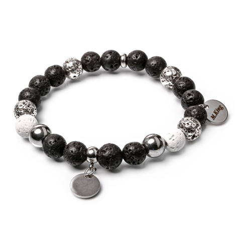 1 kép Solid Soil – Lávakő és hematit ásvány karkötő, gravírozható charmmal vagy anélkül, dobozban