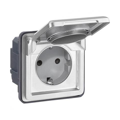 Leg. 077835 Soliroc 2P+F földelt csatlakozóaljzat 16A - 250V~, IK10, (GYV) biztonsági zsalus, csapófedéllel, csavaros bekötéssel, vandálbiztos