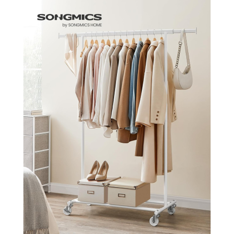 SONGMICS Mobil állítható méretű ruhaakasztó, szobainas, extra alsó polccal, Fehér HSR013W01 bútor termékleírás