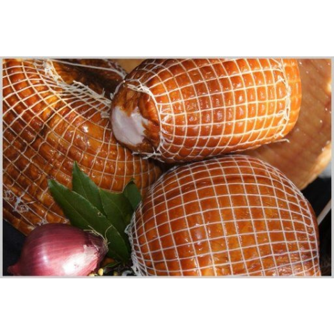 Anyaga pamutszál/poliészter gumival kombinálva, rugalmas sonkaháló, füstölt és füstölt főtt húskészítmények burkolására, kötözés helyettesítésre, erős rugalmas tartást ad a terméknek. A feltüntetett ár 1m-re vonatkozik Kötözött sonka készítéséhez sonkapác