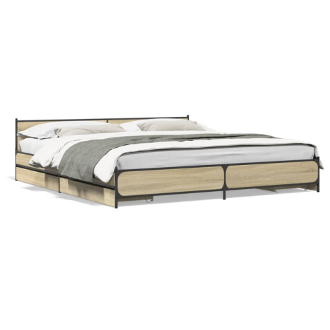 7 kép Sonoma tölgyszínű szerelt fa ágykeret 200 x 200 cm