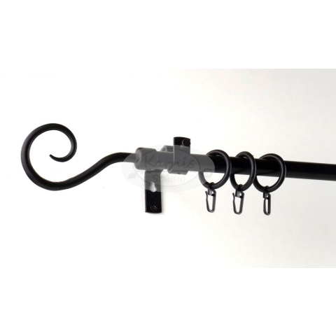 A SOPRON fekete 1 rudas 160 cm-es fém karnis szett tartalma: 1 db 160 cm-es fekete fém karnisrúd 2 db Sopron típusú fém végzáró 2 db falra szerelhető fém konzol a felszereléshez szükséges tiplik és csavarok 16 db fekete műanyag karika fekete színű ráncs