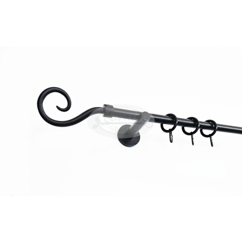 A SOPRON fekete 1 rudas, 300 cm-es, modern tartós fém karnis szett tartalma: 1 db 300 cm-es, 16 mm átmérőjű, fekete fém karnisrúd 2 db Sopron típusú fekete fém végzáró 3 db falra szerelhető modern fém konzol 30 db fekete műanyag karika fekete színű ráncs