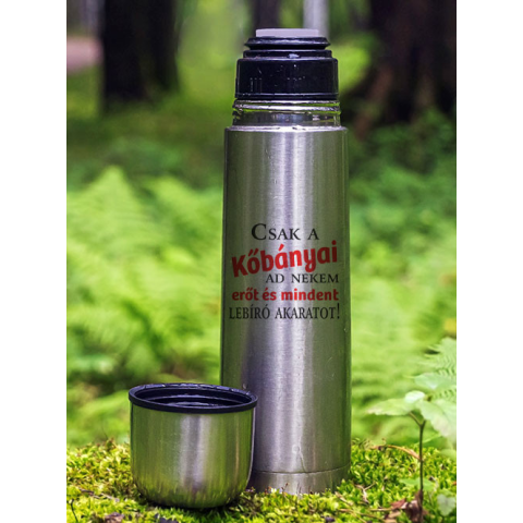 Sörös ajándék, Kőbányai termosz. Vicces ajándék a sör kedvelőinek, az alábbi felirattal: Csak a Kőbányai ad nekem erőt és mindent lebíró akaratot. Ajánljuk ajándékba, vagy családi közös főzések kiváló hangulatfokozó kellékeként. Termoszaink rozsda mentes