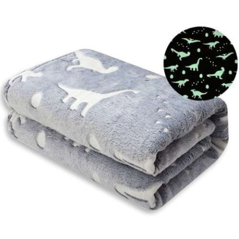 Sötétben világító, dínós plüss takaró gyerekeknek - szürke, 150x105 cm