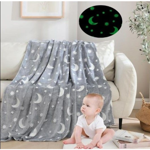 1 kép Sötétben világító hold és csillag mintás plüss takaró (szürke)