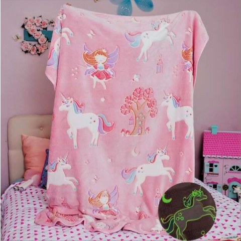 1 kép Sötétben világító plüss takaró, unikornis mintával, rózsaszín 150 x 100 cm