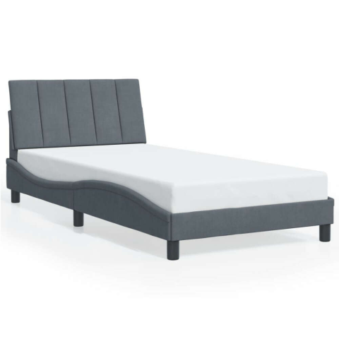 1 kép sötétszürke bársony ágykeret LED-világítással 100 x 200 cm