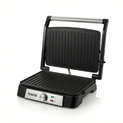 Sovio Prémium Elektromos Kontaktgrill és Szendvicssütő (2000W) KJ-202Készítsen éttermi minőségű grillételeket és ropogós melegszendvicseket saját konyhájában a Sovio KJ-202 nagy teljesítményű kontaktgrillel! Ez a sokoldalú készülék a modern technológiát ötvözi a masszív kialakítással, hogy a húsoktól a zöldségekig minden alapanyagból a legjobbat hozhassa ki.Kiemelt jellemzők és előnyök:Kimagasló teljesítmény: A 2000W-os fűtőteljesítmény gyors felmele