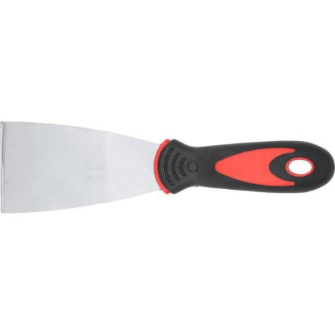 A spatula rozsdamentes, polírozott, rugalmas fémlemezből készült. A kétrétegű, különböző keménységű, színes műanyaggal borított profilos markolat szilárd fogást tesz lehetővé a szerszámon. A legtöbb építési és festési munkához szükséges, befejező munkák