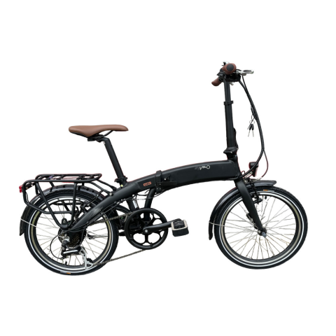 Összecsukható, kemping kerékpár, Shimano 6 sebességes váltóval. LCD kijelző, muatja a sebességet, megtett utat, töltöttséget, Li-Ion akkumulátorral, összecsukható, csomagtartóval, öt fokozatú motornyomaték szabályozóval, energia visszanyerő és pedál ráse