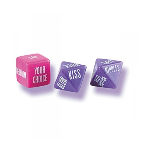 A csomagban 1 darab hagyományos hatoldalú kocka található, mely a helyszínért felel, a mellette lévő két darab 8 oldalú kocka egyike a testrészt, a másika pedig a kényeztetés módját határozza meg. 1 db hatoldalú, 2 db nyolcoldalú kocka a csomagban Eg