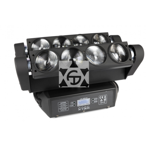 Az FTS Spider 8x12W forgófejes robotlámpa kiváló választás minden fénytechnikai igény kielégítésére. Nyolc, egyenként 12 wattos LED-del rendelkezik, melyek élénk, színes fényhatásokat biztosítanak. Ideális koncertekhez, színházi előadásokhoz és különleges