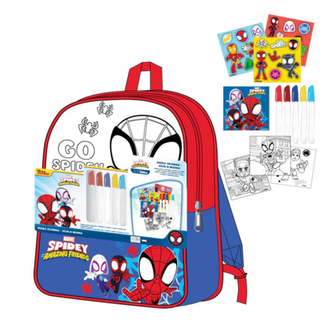 SPIDERMAN színezhető iskolatáska 2700001820Engedd szabadjára gyermeked kreativitását ezzel a fantasztikus SPIDERMAN témájú hátizsák szettel! A hátizsák eleje kiszínezhető, így a gyerekek saját ízlésük szerint dekorálhatják kedvenc karaktereikkel díszített táskát.A szett tartalma:1 db SPIDERMAN hátizsák4 db színes filctoll 4 db matricalap SPIDERMAN témábanTermékjellemzők:Mérete: 4,0 x 38,0 x 31,0 cmAnyaga: 100% poliészterElőnyök:Fejleszti a kézügyességet é