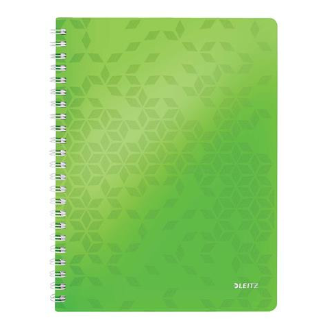 Spirálfüzet, A4, kockás, 80 lap, LEITZ Wow, zöld A funkcionalitás és dizájn tökéletes kombinációja. Ragyogó WOW színekben és stílusos geometriai mintázattal a borítón. -lefűzhető tasakkal a különálló lapok számára -kettős színhatású PP borító kívül W