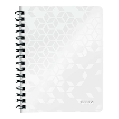 Spirálfüzet, A5, kockás, 80 lap, LEITZ Wow, fehér A funkcionalitás és dizájn tökéletes kombinációja. Ragyogó WOW színekben és stílusos geometriai mintázattal a borítón. -lefűzhető tasakkal a különálló lapok számára -kettős színhatású PP borító kívül