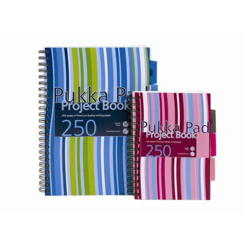 Spirálfüzet, A5, vonalas, 125 lap, PUKKA PAD Stripe project book Hisszük, hogy mindenki számára létezik egy PUKKA PAD füzet. -ikerspirálozott -belső zsebek -80 g/m2 papírból -vegyes színekben, a szín nem választható Gyártó/első EU forgalmazó elérhető