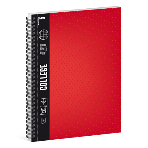 Spirálfüzet kockás ARS UNA College A/4 80 lapos piros A/4-es méretű négyzethálós spirálfüzet. 80 lapos, belseje 90 gr-os fehér papírból. A lapok mikroperforáltak és előre lyukasztva vannak. Borítója 300 gr-os fényes műnyomó kartonra, 4 szín nyomássa