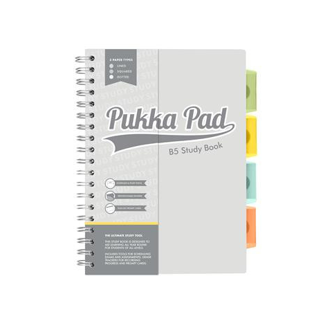 1 kép Spirálfüzet, B5, PUKKA PAD "Study book", szürke