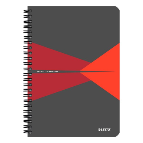 Spirálfüzet vonalas LEITZ Office A/5 90 lapos PP borítóval piros Az extra erős PP borító tökéletes mobil írófelület biztosít. A fém spirálkötésnek köszönhetően a borító 360°-ban kihajtható. Magas fehérségű papír speciális bevonattal, mely megakadályo