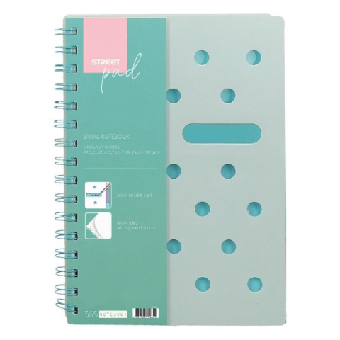 Spirálfüzet kockás STREET Pad A/5 100 lapos pasztell zöld Spirálozott, dizájnos spirálfüzet. Karton borítóval. Lapok száma: 100 lap Papírsúly: 80g/ m2 Méret: A/5
