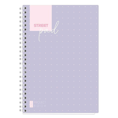 Spirálfüzet vonalas STREET Pad A/5 100 lapos lila pöttyös Ikerspirálozott, dizájnos mintás spirálfüzet karton borítóval, 80g/ m2 papírból, A/5 méret.