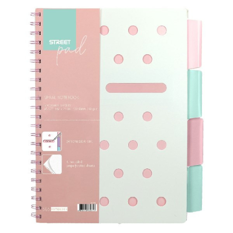 1 kép Spirálfüzet STREET Pad regiszteres A/5 vonalas 100 lapos pasztell rózsaszín