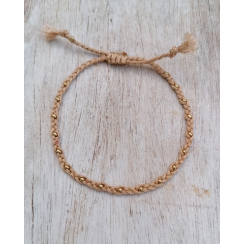SPUN Beige&Gold karkötő. Apró arany színű gyöngyökkel kézzel készült fonott karkötő. Egyedi kézzel készített fonott karkötő Mérete állítható. Aranyozottt gyöngy mérete: 2mm